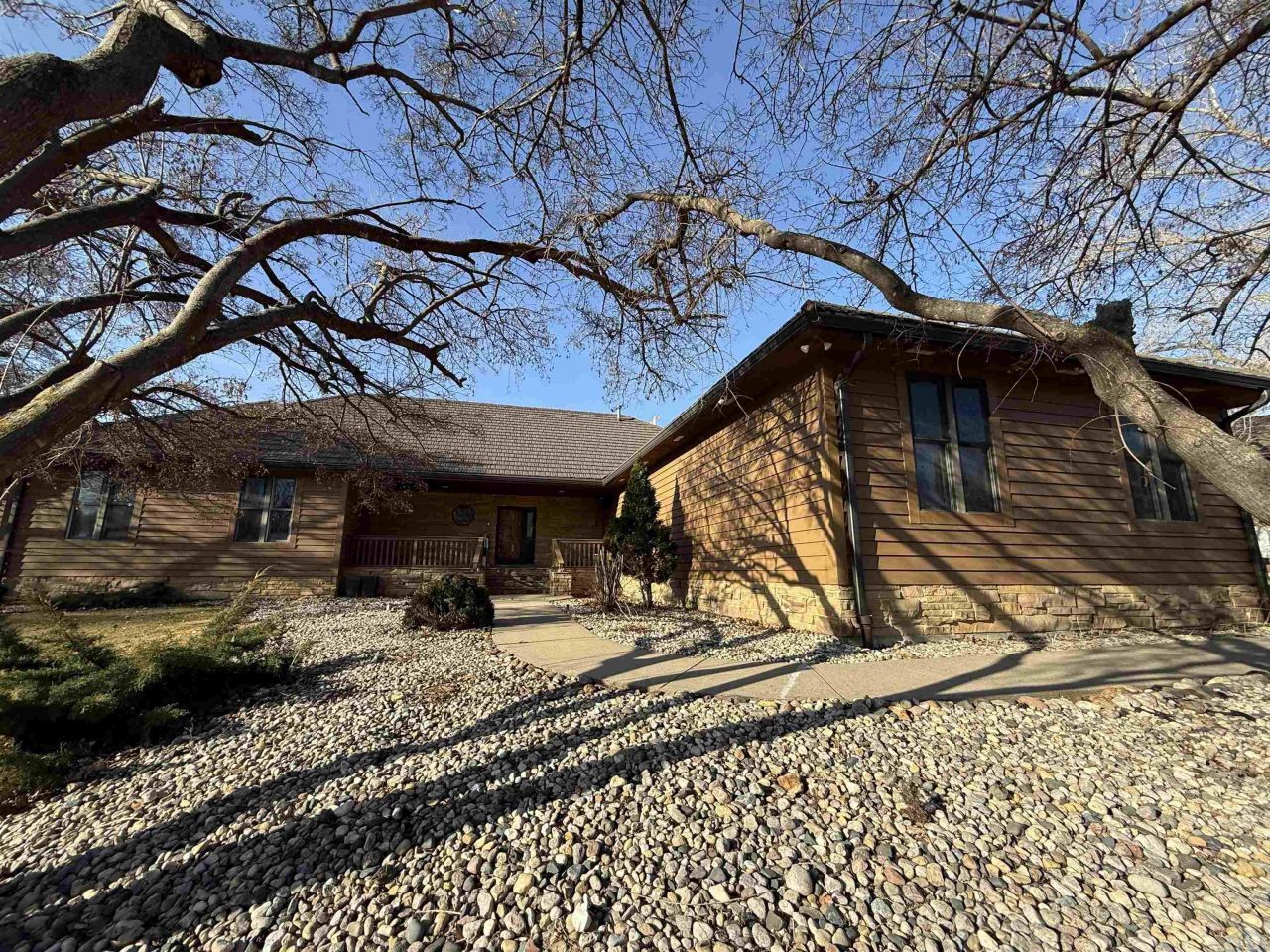 Nestled at the culmination of a secluded cul de sac and offering commanding vistas of the iconic Missouri river, this expansive four bedroom four bath ranch is an oasis from the grind of everyday living. The great room, kitchen, family room and primary suite all offer access to the sprawling concrete covered deck with stunning views of the river. Upon entry, the home welcomes with a grandeur, the focal point being a magnificent double sided stone fireplace delineating the kitchen and great room and sets the perfect ambiance for cozy evenings with loved ones. The culinary domain impresses with hardwood flooring, granite counter tops, tile backsplash and upgraded appliances. The great room and adjoining family room beckons for relaxation and boundless possibilities for entertainment. A sanctuary of repose, the primary suite boasts a spa like bath and generous walk in closet. Two of the remaining three bedrooms on the main are offering comfort and convenience with their own baths and walk in closets. Large main floor laundry has utility sink and lots of cabinets and counter space. The lower level is partially finished with interlocking matted floor squares. A protected 45 foot shooting range is ideal for an archery or gun enthusiast. In addition, the lower level has three large flexible areas, a wine room and plenty of closets and storage. Oversized, attached three car garage is heated and floor was just freshly painted. Large storage shed and fenced area on side of house is ideal for pets or a myriad of other uses. This almost one acre lot has in ground sprinkler system. Roof was replaced in 2017 with lifetime steel shake shingles. Cedar siding was freshly re~stained last fall. New gutter helmets were also installed at that time. Make this well built expansive ranch yours!!!!